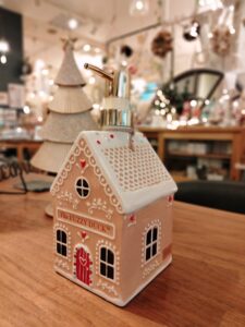 お菓子の家をかたどった陶器のボトルは置くだけで気分が盛り上がりますね。